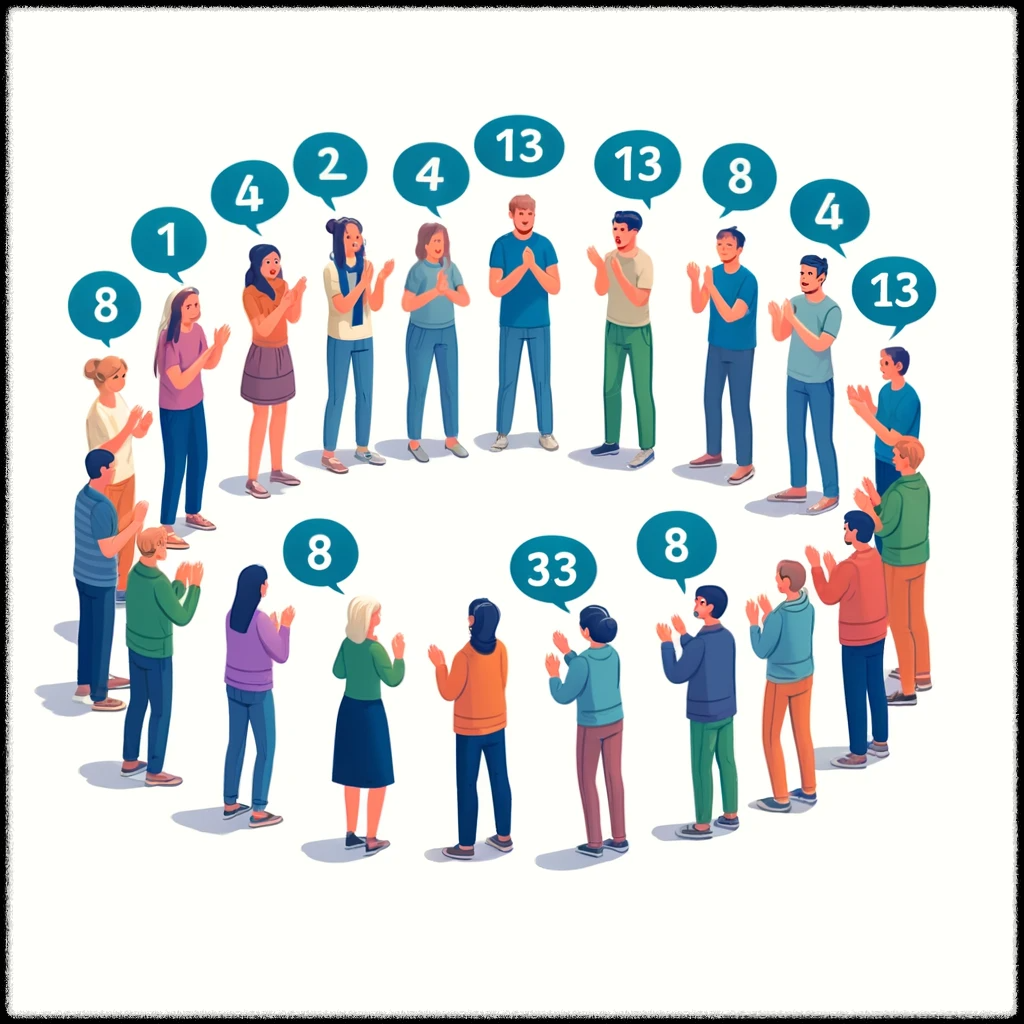 - 예를 들어, "1, 2, (박수), 4, 5, (박수), 7, 8, (박수), 10..."