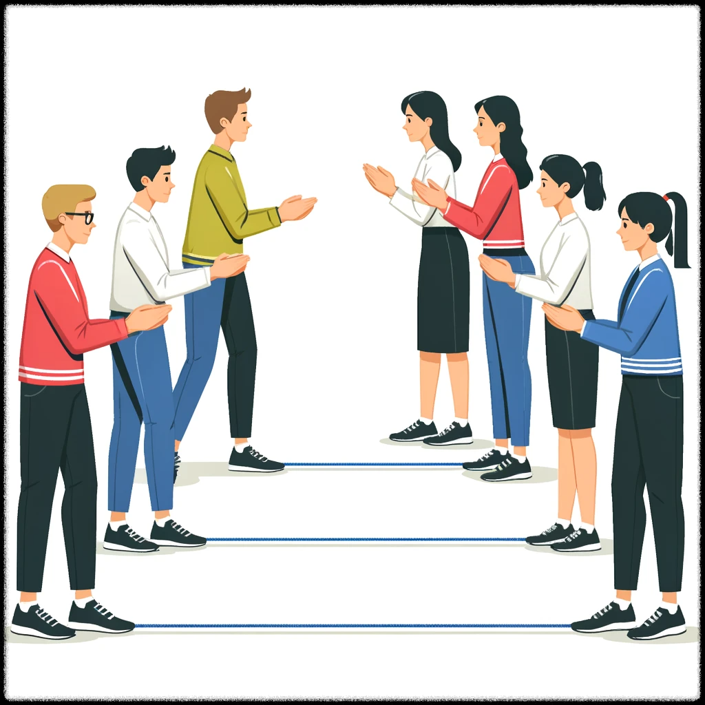 - 첫 번째 사람이 박수를 치고 다음 사람에게 넘깁니다.