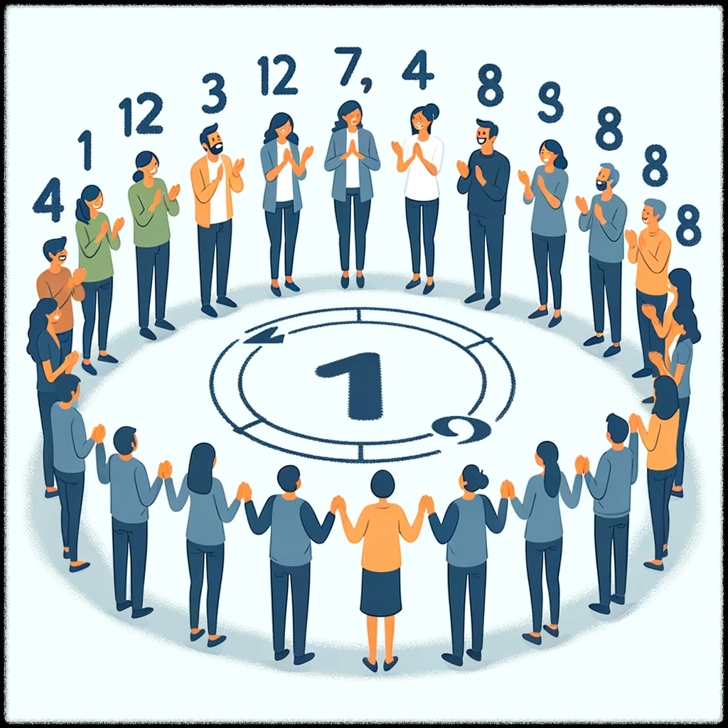 - 원형으로 서서 한 사람이 시작합니다.