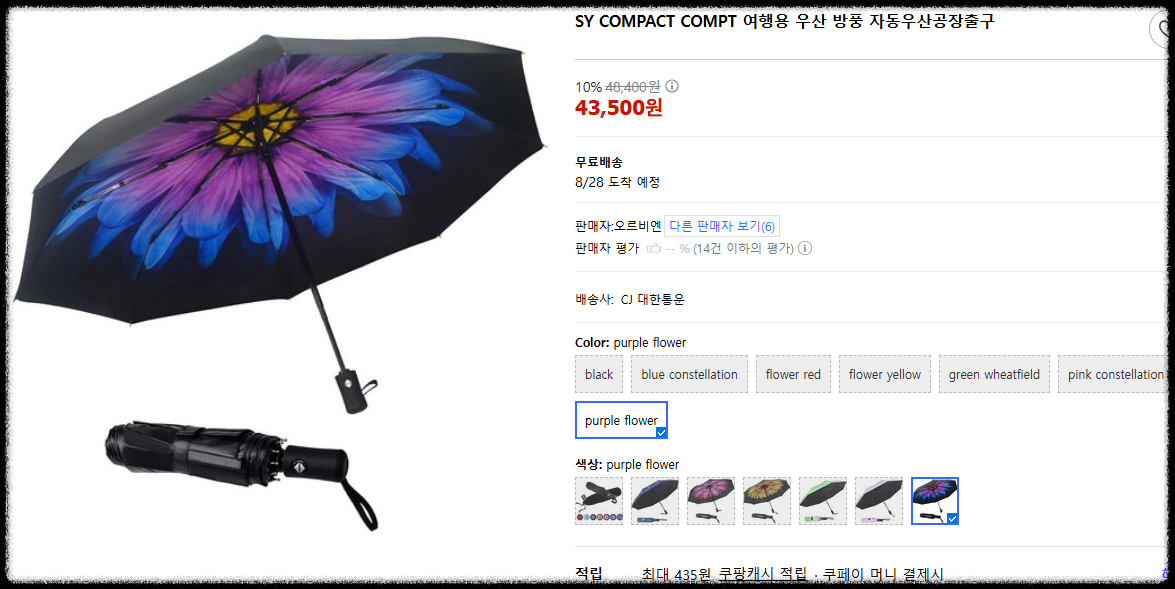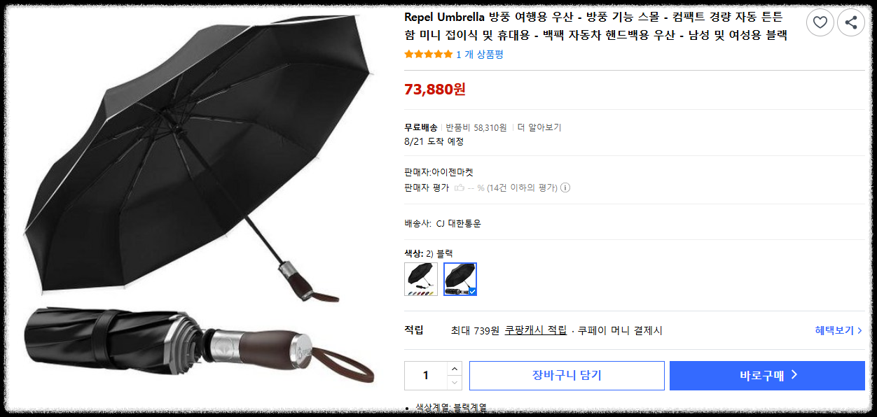 | 초경량, 저렴한 가격, 자동 개폐, 다양한 색상 | 강풍에는 구조가 다소 약할 수 있음 |